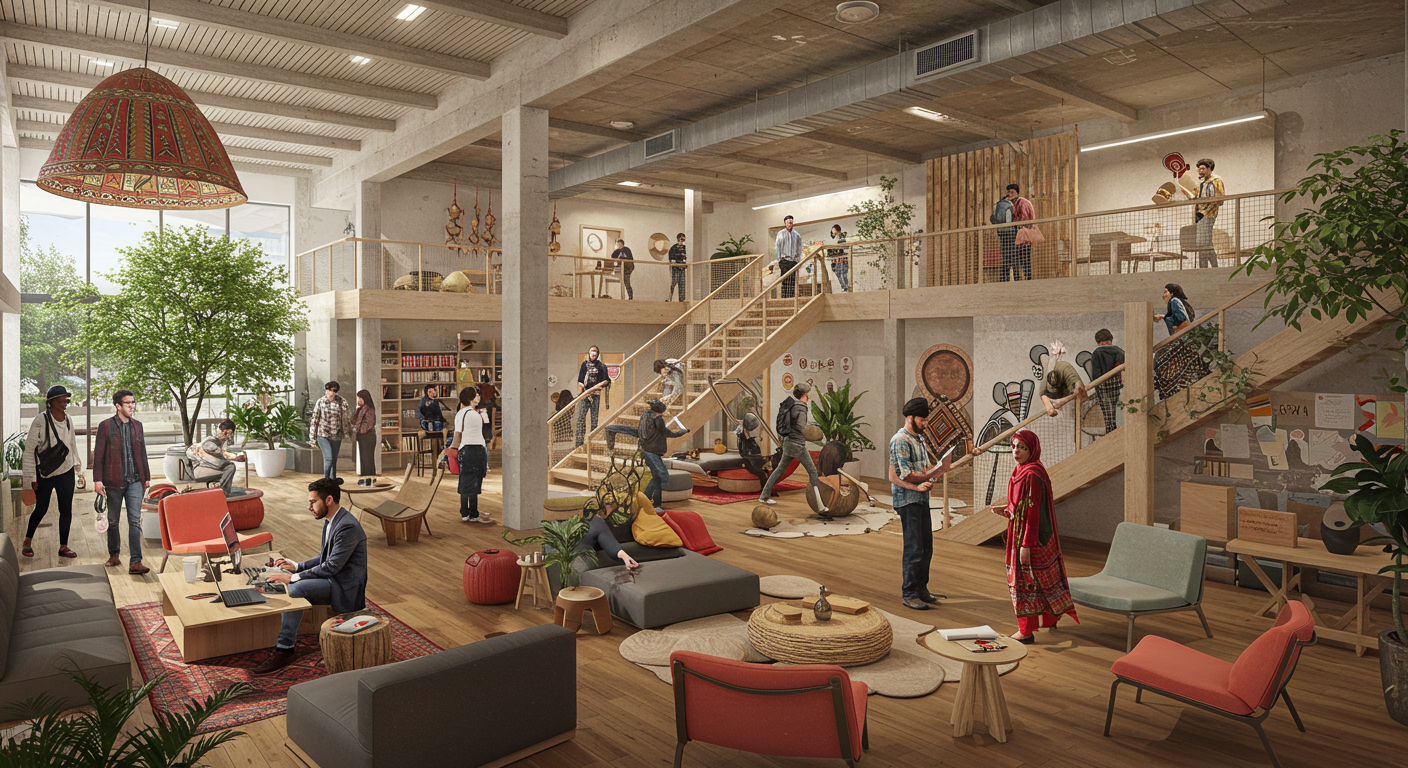 Cosmo-Local Hubs network transforms vacant buildings into regenerative community spaces for 21st-century living. Funded and co-governed by global blockchain networks, each hub is redesigned by adaptive reuse architects using principles of wellbeing, neuroarchitecture, and bioconstruction. These hubs offer coworking, arts, learning, and food services, while sharing open-source renovation playbooks to inspire global replication and a shift toward a regenerative, inclusive future.ù