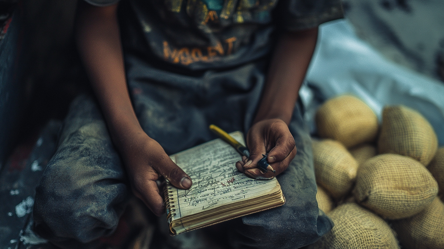 Scenes may include patios transformed into workshops, children doing chores or playing next to tools, hands covered in flour or dust, and worn-out shoes from long commutes—a portrait of how precarious labor conditions impact not just individuals, but entire families.